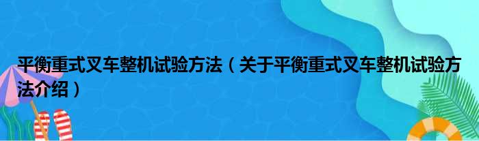 平衡重式叉車整機試驗方法(關于平衡重式叉車整機試驗方法介紹)