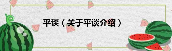 大家好,笑笑來為大家解答以上的問題。平談,關于平談介紹這個很多人還不知道,現在讓我們一起來看看吧!