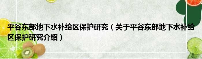 平谷東部地下水補給區保護研究(關于平谷東部地下水補給區保護研究介紹)