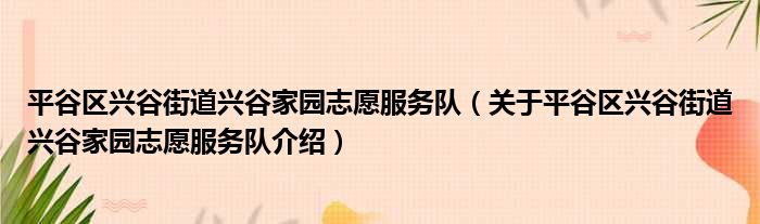 平谷區興谷街道興谷家園志愿服務隊(關于平谷區興谷街道興谷家園志愿服務隊介紹)