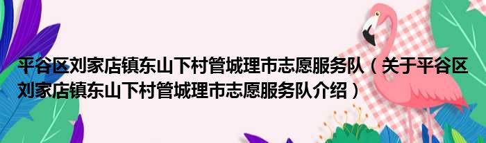 平谷區劉家店鎮東山下村管城理市志愿服務隊(關于平谷區劉家店鎮東山下村管城理市志愿服務隊介紹)