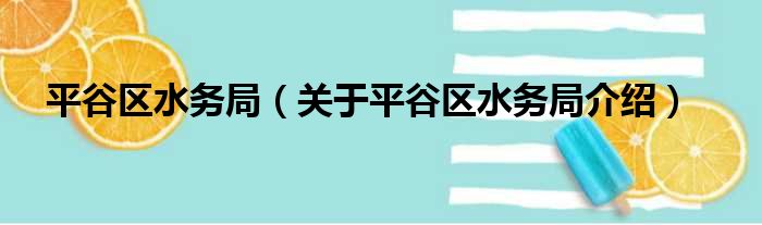 平谷區水務局(關于平谷區水務局介紹)