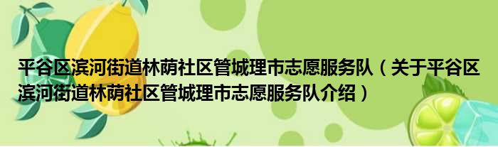 平谷區濱河街道林蔭社區管城理市志愿服務隊(關于平谷區濱河街道林蔭社區管城理市志愿服務隊介紹)
