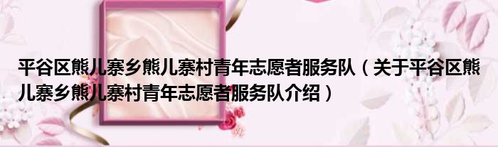 平谷區熊兒寨鄉熊兒寨村青年志愿者服務隊(關于平谷區熊兒寨鄉熊兒寨村青年志愿者服務隊介紹)