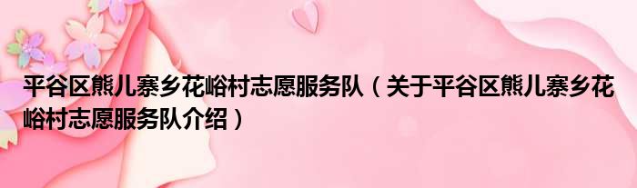 平谷區熊兒寨鄉花峪村志愿服務隊(關于平谷區熊兒寨鄉花峪村志愿服務隊介紹)