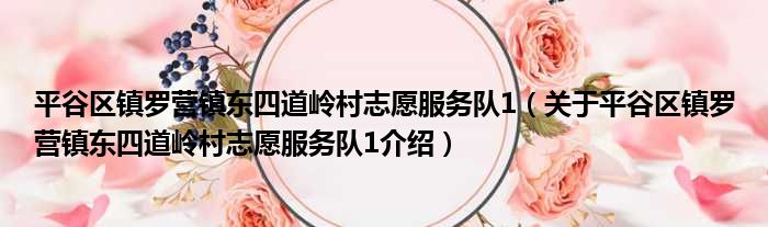 平谷區鎮羅營鎮東四道嶺村志愿服務隊1(關于平谷區鎮羅營鎮東四道嶺村志愿服務隊1介紹)