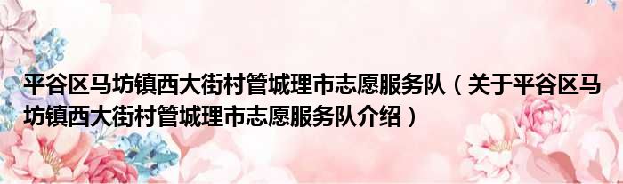 平谷區馬坊鎮西大街村管城理市志愿服務隊(關于平谷區馬坊鎮西大街村管城理市志愿服務隊介紹)
