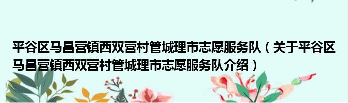 平谷區馬昌營鎮西雙營村管城理市志愿服務隊(關于平谷區馬昌營鎮西雙營村管城理市志愿服務隊介紹)