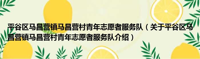 平谷區馬昌營鎮馬昌營村青年志愿者服務隊(關于平谷區馬昌營鎮馬昌營村青年志愿者服務隊介紹)