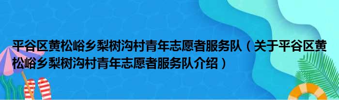 平谷區黃松峪鄉梨樹溝村青年志愿者服務隊(關于平谷區黃松峪鄉梨樹溝村青年志愿者服務隊介紹)