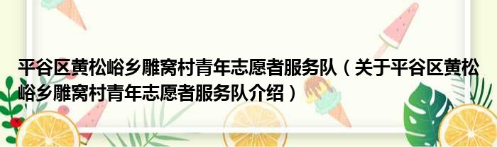 平谷區黃松峪鄉雕窩村青年志愿者服務隊(關于平谷區黃松峪鄉雕窩村青年志愿者服務隊介紹)