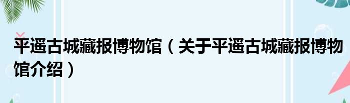 平遙古城藏報博物館(關于平遙古城藏報博物館介紹)