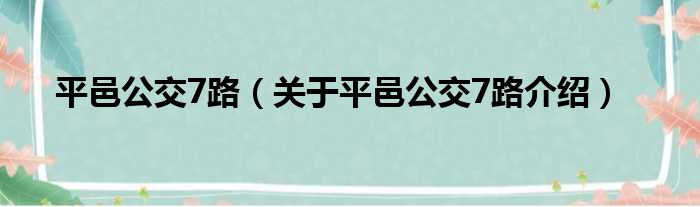 關于平邑公交7路到此分享完畢,希望能幫助到您。