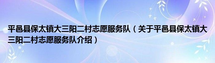 關于平邑縣保太鎮大三陽二村志愿服務隊到此分享完畢,希望能幫助到您。