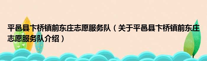 平邑縣卞橋鎮前東莊志愿服務隊(關于平邑縣卞橋鎮前東莊志愿服務隊介紹)