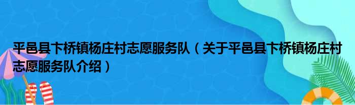 平邑縣卞橋鎮楊莊村志愿服務隊(關于平邑縣卞橋鎮楊莊村志愿服務隊介紹)