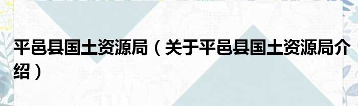 導讀 大家好,笑笑來為大家解答以上的問題。平邑縣國土資源局,關于平邑縣國土資源局介紹這個很多人還不知道,現在讓我們一起來看看吧!1、 平