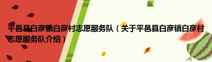平邑縣白彥鎮白彥村志愿服務隊(關于平邑縣白彥鎮白彥村志愿服務隊介紹)