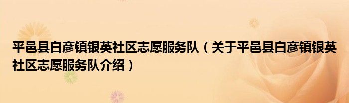 關于平邑縣白彥鎮銀英社區志愿服務隊到此分享完畢,希望能幫助到您。