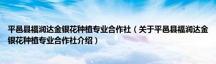 平邑縣福潤達金銀花種植專業合作社(關于平邑縣福潤達金銀花種植專業合作社介紹)