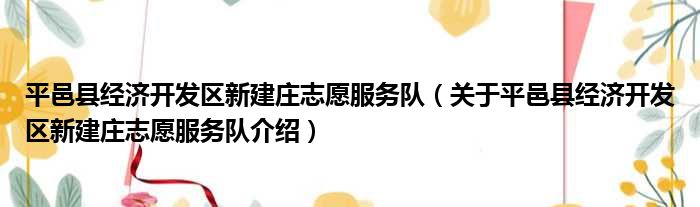 平邑縣經濟開發區新建莊志愿服務隊(關于平邑縣經濟開發區新建莊志愿服務隊介紹)