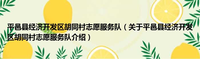 平邑縣經濟開發區胡同村志愿服務隊(關于平邑縣經濟開發區胡同村志愿服務隊介紹)