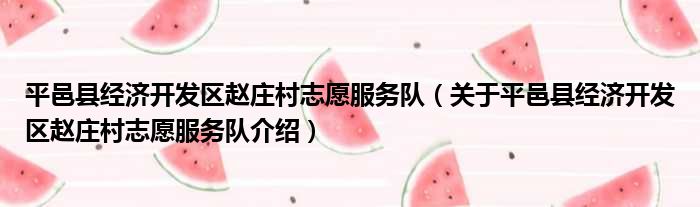 平邑縣經濟開發區趙莊村志愿服務隊(關于平邑縣經濟開發區趙莊村志愿服務隊介紹)