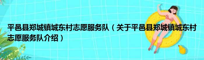 平邑縣鄭城鎮城東村志愿服務隊(關于平邑縣鄭城鎮城東村志愿服務隊介紹)
