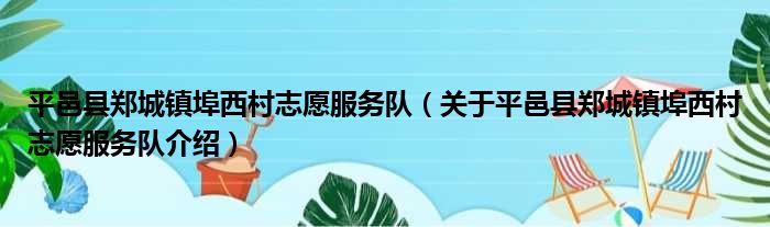 平邑縣鄭城鎮埠西村志愿服務隊(關于平邑縣鄭城鎮埠西村志愿服務隊介紹)