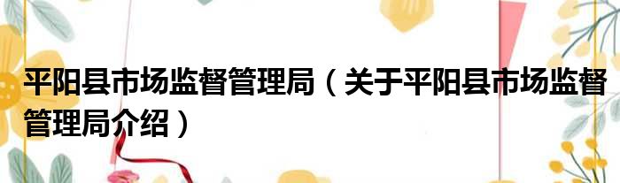 平陽縣市場監督管理局(關于平陽縣市場監督管理局介紹)