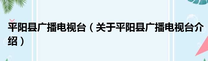平陽縣廣播電視臺(關于平陽縣廣播電視臺介紹)
