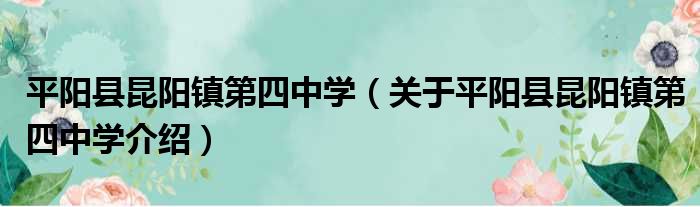 平陽縣昆陽鎮第四中學(關于平陽縣昆陽鎮第四中學介紹)