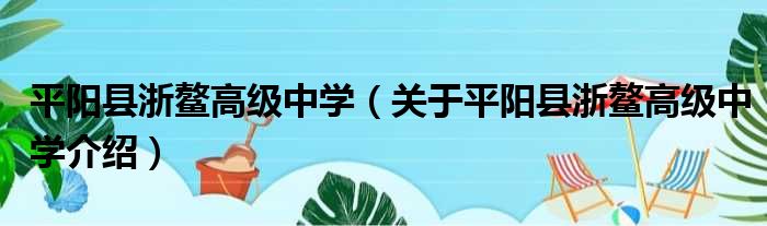 平陽縣浙鰲高級中學(關于平陽縣浙鰲高級中學介紹)