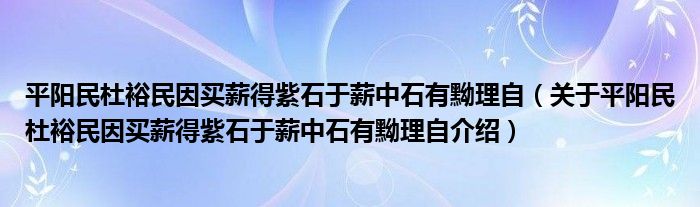導讀 大家好,笑笑來為大家解答以上的問題。平陽民杜裕民因買薪得紫石于薪中石有黝理自,關于平陽民杜裕民因買薪得紫石于薪中石有黝理自介紹這個