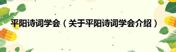 平陽詩詞學會(關于平陽詩詞學會介紹)