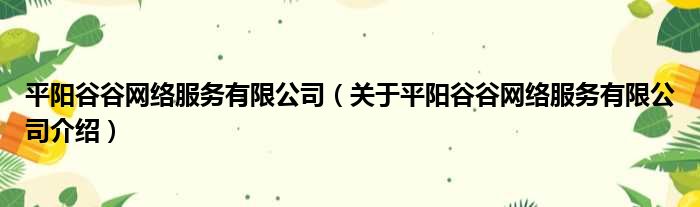 平陽谷谷網絡服務有限公司(關于平陽谷谷網絡服務有限公司介紹)