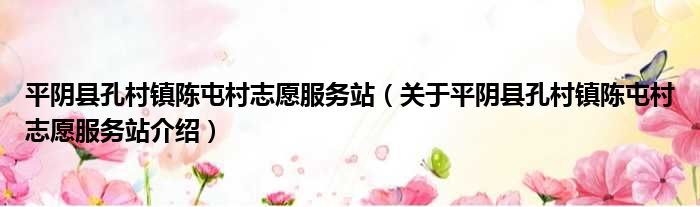平陰縣孔村鎮陳屯村志愿服務站(關于平陰縣孔村鎮陳屯村志愿服務站介紹)