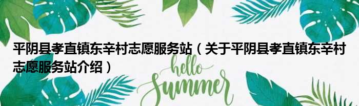 平陰縣孝直鎮東辛村志愿服務站(關于平陰縣孝直鎮東辛村志愿服務站介紹)
