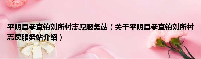 平陰縣孝直鎮劉所村志愿服務站(關于平陰縣孝直鎮劉所村志愿服務站介紹)