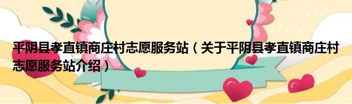 平陰縣孝直鎮商莊村志愿服務站(關于平陰縣孝直鎮商莊村志愿服務站介紹)