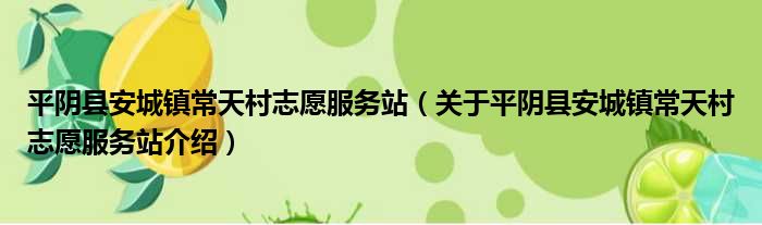 平陰縣安城鎮常天村志愿服務站(關于平陰縣安城鎮常天村志愿服務站介紹)