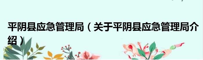平陰縣應急管理局(關于平陰縣應急管理局介紹)