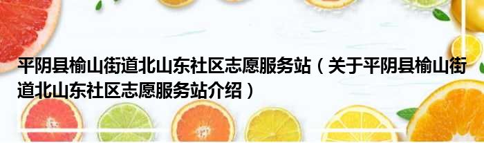 平陰縣榆山街道北山東社區志愿服務站(關于平陰縣榆山街道北山東社區志愿服務站介紹)