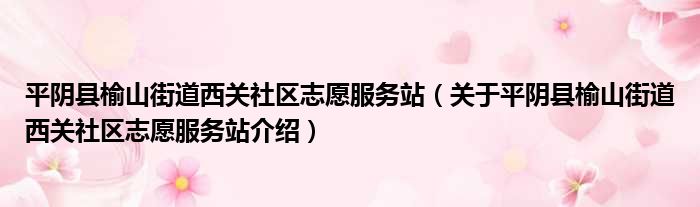 平陰縣榆山街道西關社區志愿服務站(關于平陰縣榆山街道西關社區志愿服務站介紹)