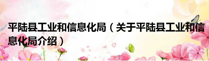 平陸縣工業和信息化局(關于平陸縣工業和信息化局介紹)
