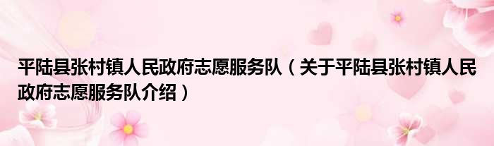平陸縣張村鎮人民政府志愿服務隊(關于平陸縣張村鎮人民政府志愿服務隊介紹)
