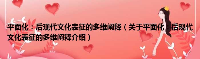 平面化:后現代文化表征的多維闡釋(關于平面化:后現代文化表征的多維闡釋介紹)