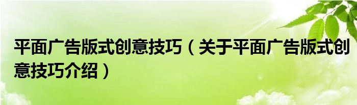 平面廣告版式創意技巧(關于平面廣告版式創意技巧介紹)