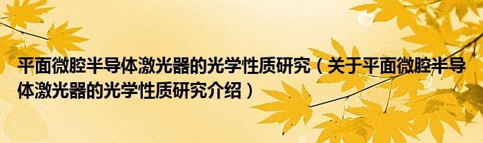 平面微腔半導體激光器的光學性質研究(關于平面微腔半導體激光器的光學性質研究介紹)