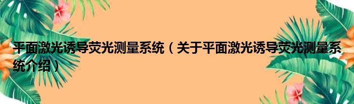 平面激光誘導熒光測量系統(關于平面激光誘導熒光測量系統介紹)